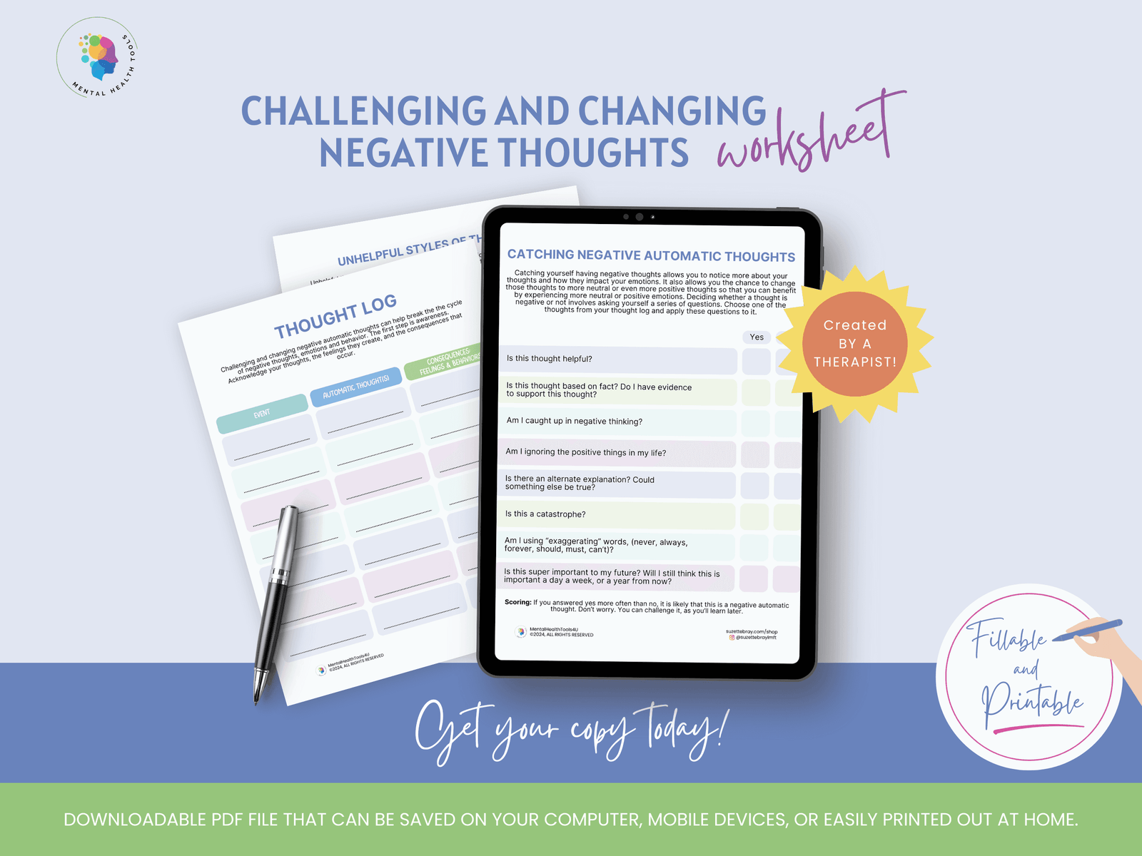 Please note that the printables offered from Mental Health Tools 4 U by Suzette Bray, are not a substitute or replacement for visiting a licensed therapist, nor are they an attempt at offering any sort of medical advice. A purchase of the printable does not constitute a therapist-client relationship.