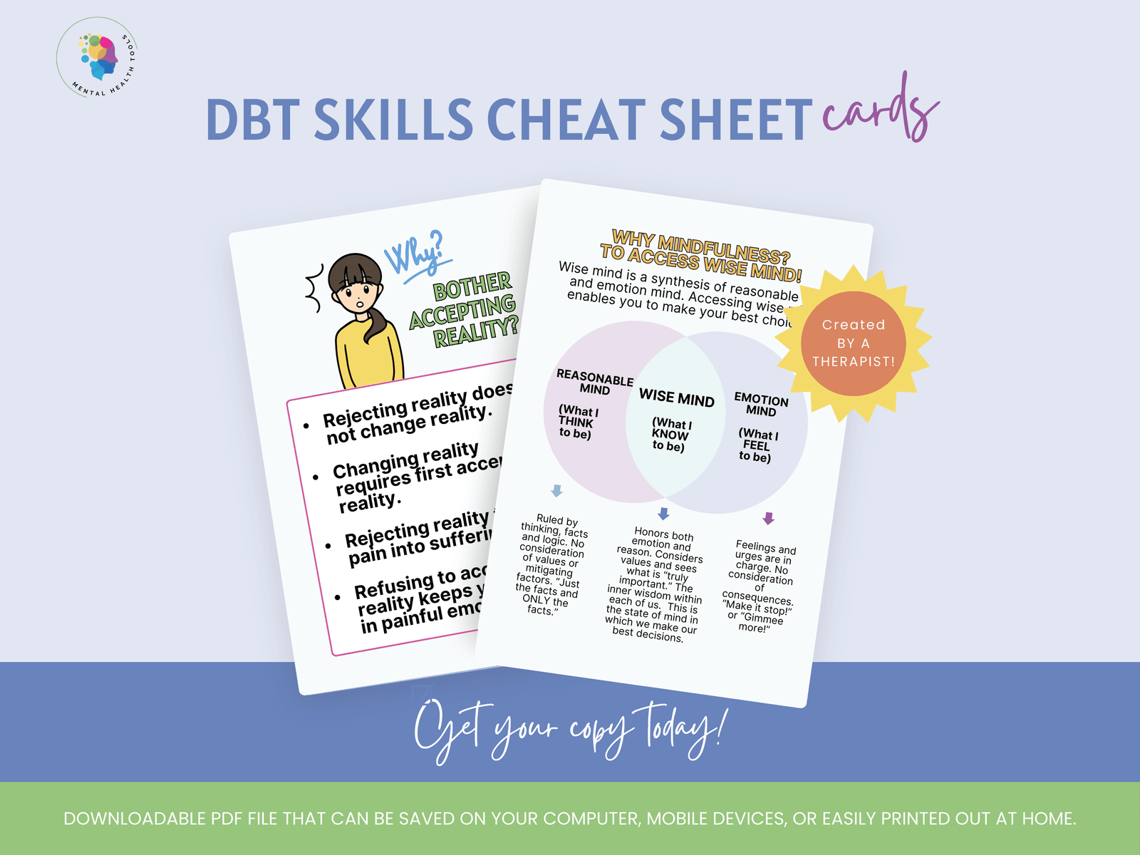 With these cheat sheet cards, integrating DBT into daily life has never been simpler!