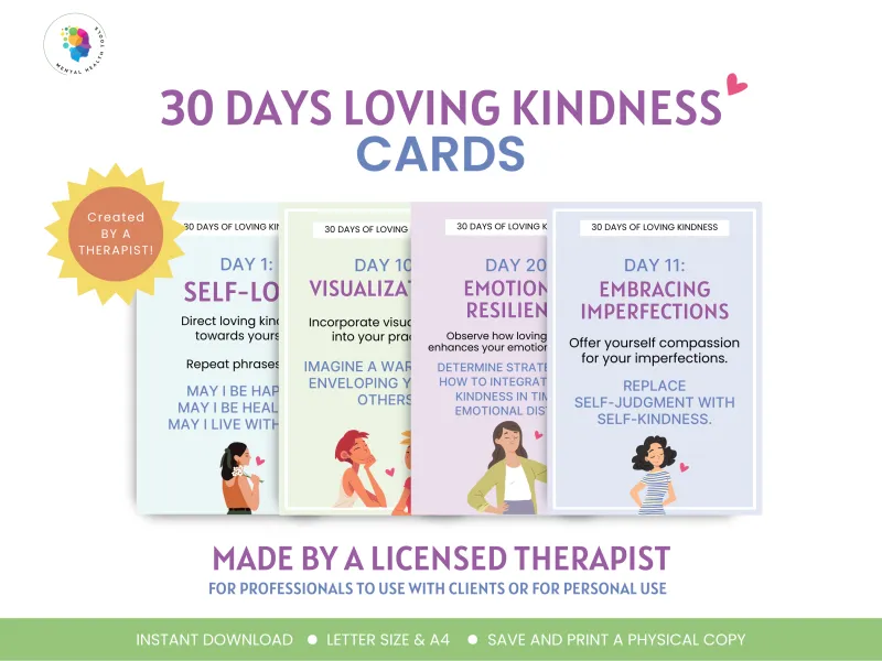 This set of Loving Kindness Intention Cards is designed to help you cultivate a spirit of loving kindness and self-compassion.