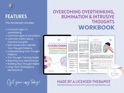 Overthinking is something almost everyone faces, but it doesn’t have to control your mind. This Overcoming Overthinking, Rumination, and Intrusive Thoughts Workbook offers practical tools to help you manage and reduce these thought patterns.